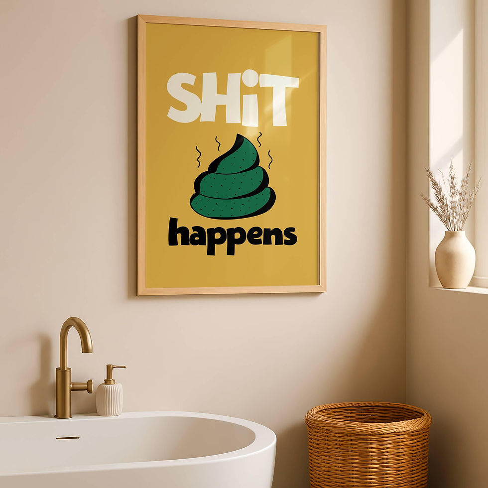 Shit Happens Funny Bathroom Decor Trendy Wall Print College Bathroom Decor Funny